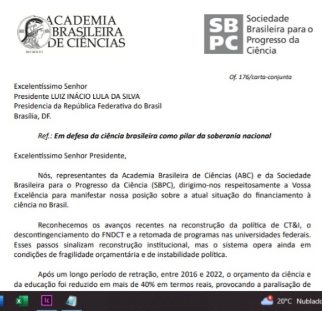 ABC e SBPC enviam carta a Lula em defesa da ciência