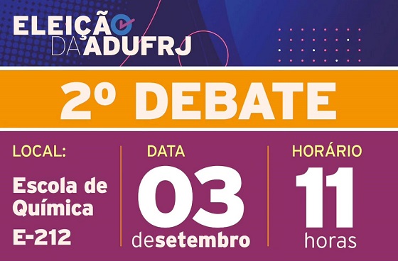 Na próxima quarta-feira, 3 de setembro, será realizado o segundo debate entre os grupos. Será às 11h, no Auditório da Escola de Química, no Bloco E do Centro de Tecnologia.