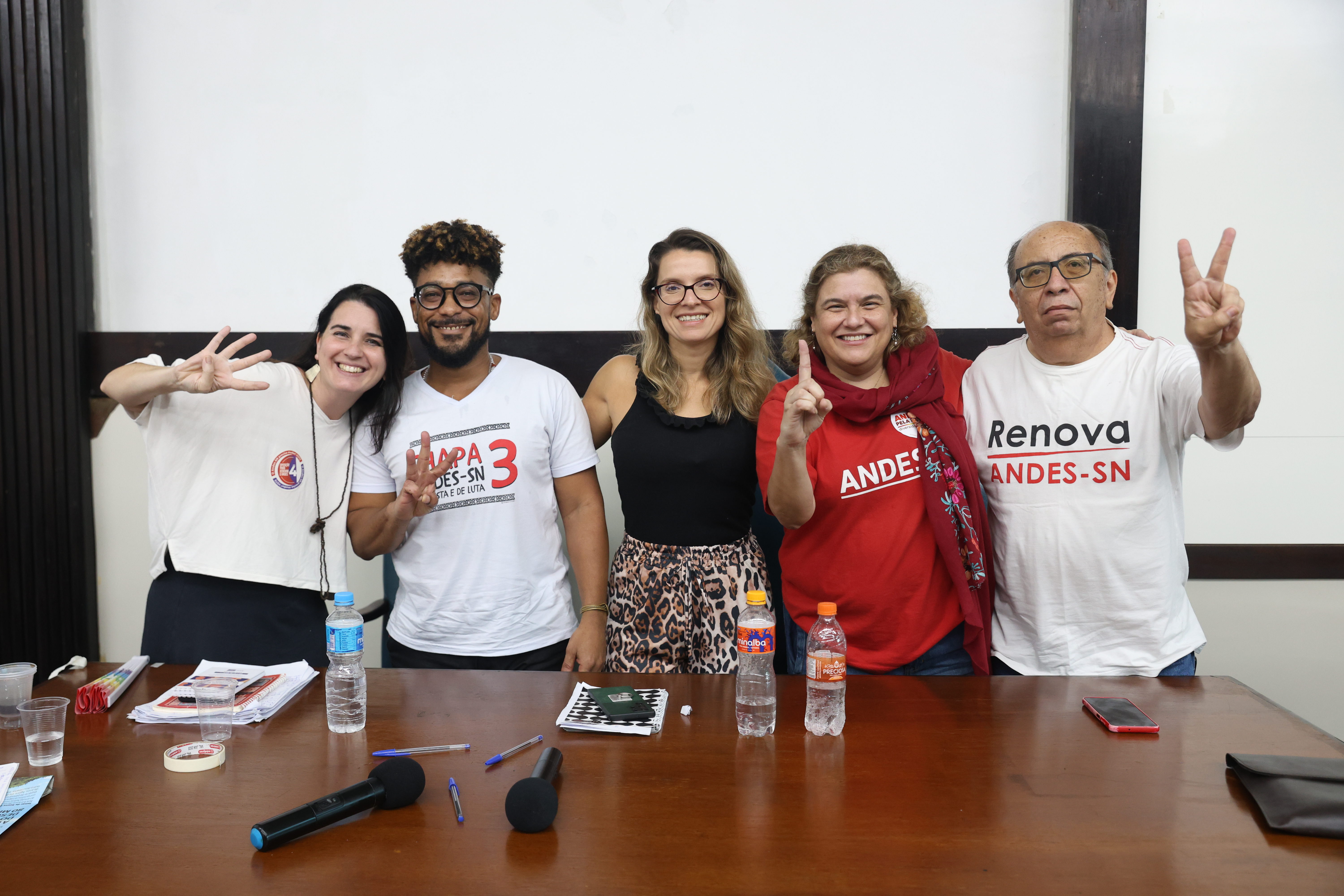 A presidenta da CEL, professora Mayra Goulart, mediou o encontro. Todas as chapas concordaram com questões sobre greve, democracia, autonomia sindical, crise orçamentária das universidades e os riscos da extrema direita. As diferenças se concentraram sobre a forma de organização do Sindicato Nacional diante do contexto político do país.