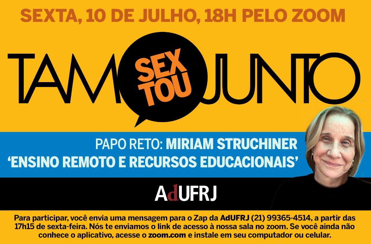 A professora Miriam Struchiner, coordenadora do Laboratório de Tecnologias Cognitivas do NUTES-UFRJ, é a convidada especial do bate-papo entre docentes que a AdUFRJ promove todas as sextas-feiras. O tema da atividade do dia 10 é "Ensino Remoto e Recursos Educacionais".