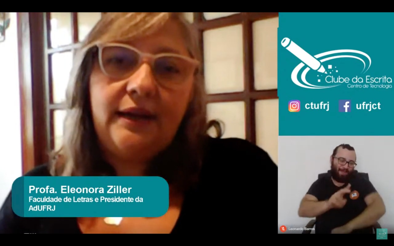 “Aquele texto chamado de “acadêmico excessivo”, que ninguém entende, é o anticonhecimento. Ele cria barreiras de acesso ao conhecimento que está sendo produzido, e a escrita precisa ser exatamente o contrário disso”, afirmou a presidente da AdUFRJ, Eleonora Ziller, em uma live promovida no dia 2 de julho. A conversa sobre “O desafio da escrita entre orientadores e orientados” contou também com a professora Dani Balbi, orientada pela professora Eleonora no seu doutorado em Ciências da Literatura, na Faculdade de Letras.