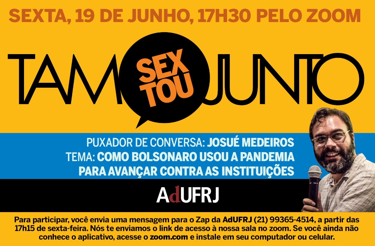 Para participar do encontro virtual, é fácil: a partir das 17h15, você envia uma mensagem para o whatsapp da AdUFRJ (21) 99365-4514 pedindo para participar e nós te enviamos o link de acesso à nossa sala no ZOOM. Se você ainda não conhece o aplicativo, acesse zoom.come instale em seu computador ou celular.