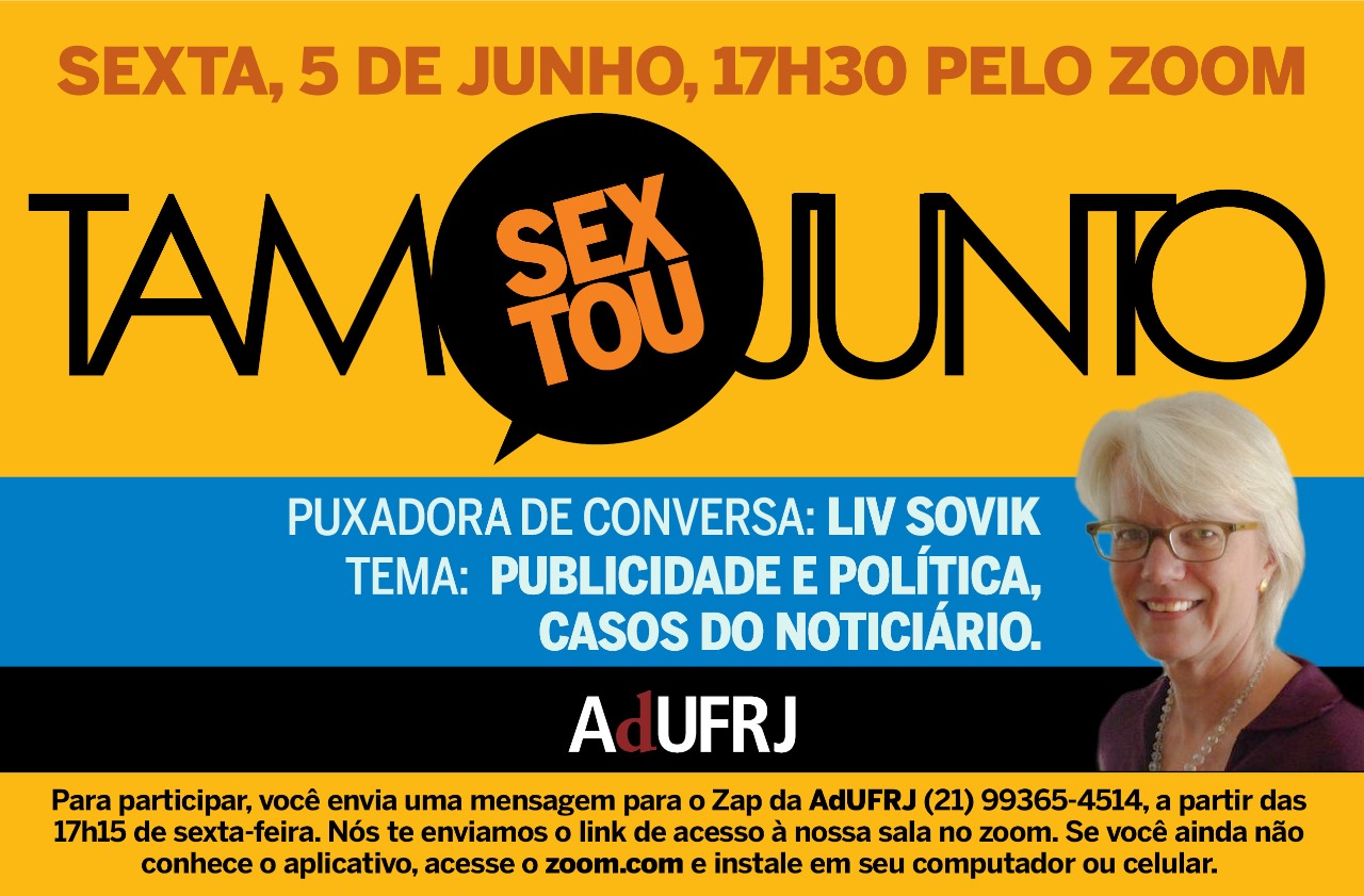Para participar é fácil, a partir das 17h15 você envia uma mensagem para o whatsapp da AdUFRJ (21) 99365-4514 pedindo para participar e nós te enviamos o link de acesso à nossa sala no ZOOM. Se você ainda não conhece o aplicativo, acesse zoom.come instale em seu computador ou celular.