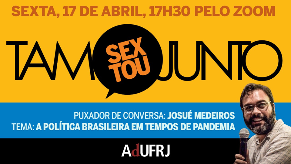 Sexta-feira é dia de os professores e professoras da UFRJ se encontrarem no bate-papo virtual da AdUFRJ. Quem vai puxar a conversa esta semana é o professor do IFCS Josué Medeiros, diretor da associação docente, que vai falar sobre a política brasileira em tempos de pandemia.