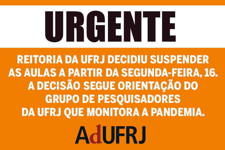 Reitoria da UFRJ decidiu suspender as aulas por 15 dias, a partir da próxima segunda-feira, 16. A decisão segue orientação do grupo de infectologistas da universidade que, há três semanas, monitora a pandemia. A reitora informa que o retorno letivo será avaliado, a partir dos boletins epidemiológicos do Ministério da Saúde.
