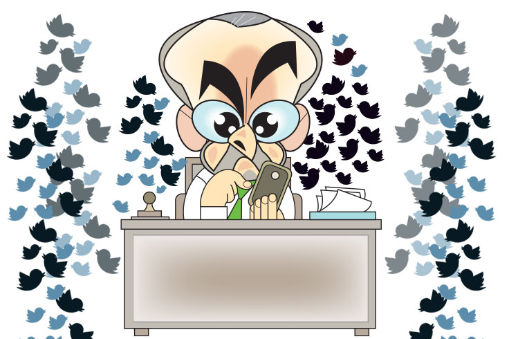OS NÚMEROS DISPENSAM ADJETIVOS. Em nove meses, de 24 de abril de 2019 a 24 de janeiro de 2020, o ministro da Educação postou 3.149 tuítes. Em média, foram mais de 11 tuítes por dia, incluindo postagens de texto, de vídeo, retuitagens e comentários. Para analisar o material, a equipe do Jornal da AdUFRJ selecionou 255 posts, a partir de palavras-chave presentes na rede social de Abraham Weintraub e de temas relacionados com o cotidiano da universidade. O resultado é revelador de um homem público que usa a internet como trincheira de trabalho ideológico e faz do deboche e da agressão suas ferramentas narrativas. Dos 255 tuítes analisados, 85 carregam as palavras PT, Lula, comunista, esquerda, comunistinha... Há mais citações à oposição política do que à ciência e à pesquisa. A palavra cientista não aparece uma única vez. Já as menções ao chefe Bolsonaro e a seus herdeiros são frequentes. Mais de 80 vezes. Nas próximas páginas, publicamos parte dessas postagens, com links, análise e uma certeza: o ministro pratica sem pudor a guerra ideológica que tanto critica em suas postagens. 80% delas ocorrem em dias úteis, quando o titular da Educação deveria estar se dedicando às complexas tarefas da pasta.