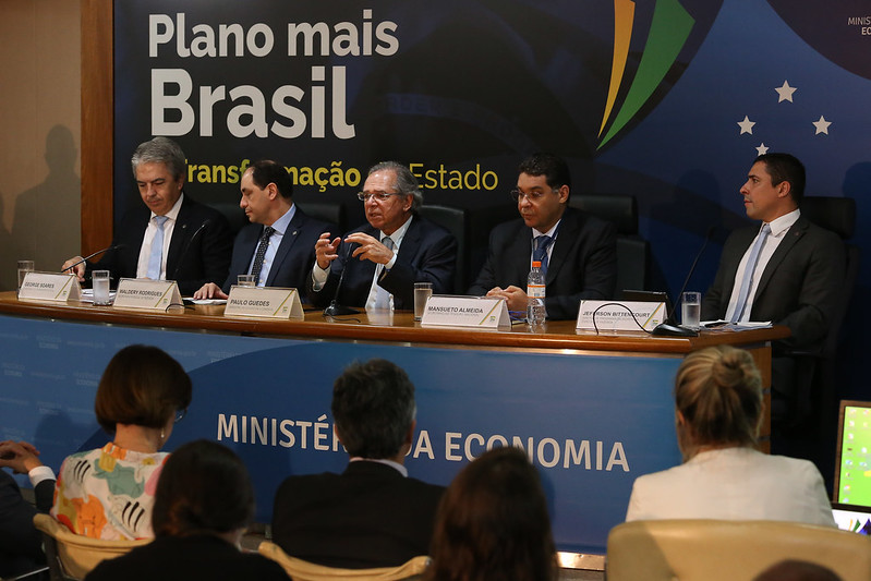 "O governo Bolsonaro, por intermédio de seu líder no Senado, Fernando Bezerra Coelho (MDB-PE), apresentou conjunto de 3 propostas de emenda à Constituição (PEC), que irão tramitar no Senado Federal, com o propósito de conter o crescimento da despesa obrigatória, regulamentar a “regra de outro”, instituir plano de revisão de despesa, desvincular, desindexar e desobrigar despesas, além de liberar recursos vinculados a fundos públicos. Não constam desse pacote, nem a reforma administrativa nem a tributária, que serão objetos os deputados.