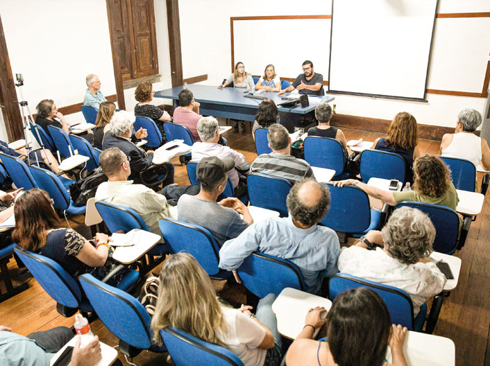 Foto: Fernando SouzaOs professores continuam mobilizados em defesa do direito às progressões múltiplas - o dispositivo, previsto em resolução do Conselho Universitário de 2014, está na mira da Advocacia-Geral da União e do Ministério da Economia. A segunda reunião da Adufrj para discutir o tema, que ocorreu na manhã desta sexta (8), na Faculdade de Letras, indicou a realização de uma conversa emergencial com a reitoria e a Comissão Permanente de Pessoal Docente (CPPD) no início da próxima semana. O encontro será aberto à participação de todos os interessados. Haverá convocação pelo whatsapp da entidade.