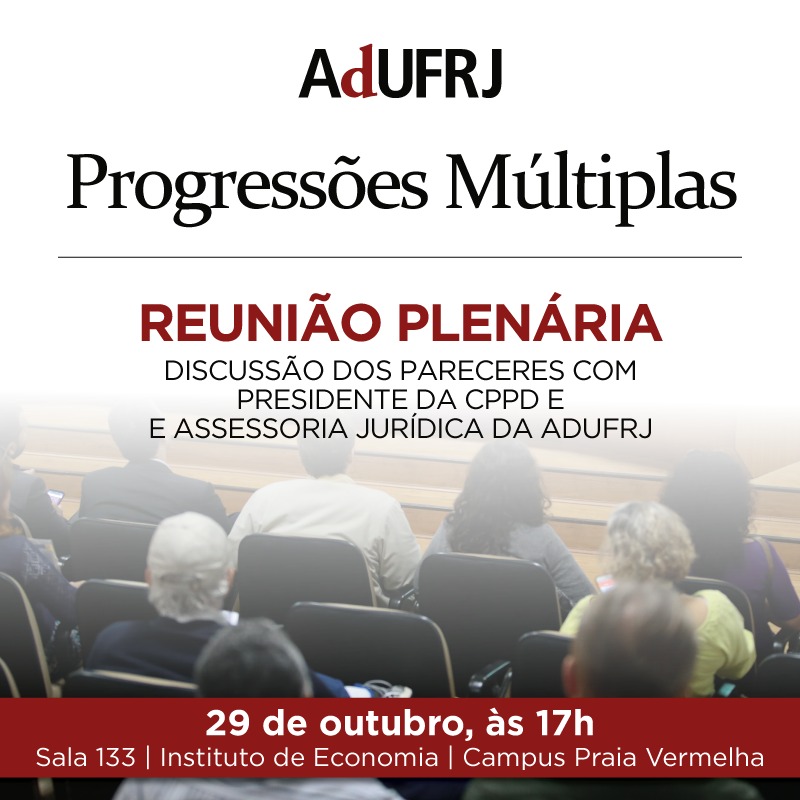 Atenção, professores! A AdUFRJ promove reunião sobre a questão da progressão múltipla na carreira docente na terça-feira, às 17h, na sala 133 do Instituto de Economia, no campus da Praia Vermelha.