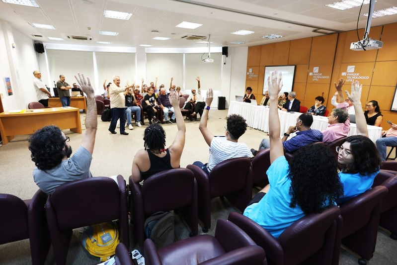 Antes da votação, a diretoria deu informes sobre as últimas ações realizadas pela gestão. Dentre as iniciativas, estão a semana da AdUFRJ em Macaé, a participação do sindicato na Semana do Servidor da UFRJ, e a reunião com a reitoria, em 3 de dezembro, para indicar a ilegalidade da cobrança de ponto para professores do Ensino Básico, Técnico e Tecnológico. Todos os temas foram detalhadamente noticiados nas últimas edições do Jornal da AdUFRJ.