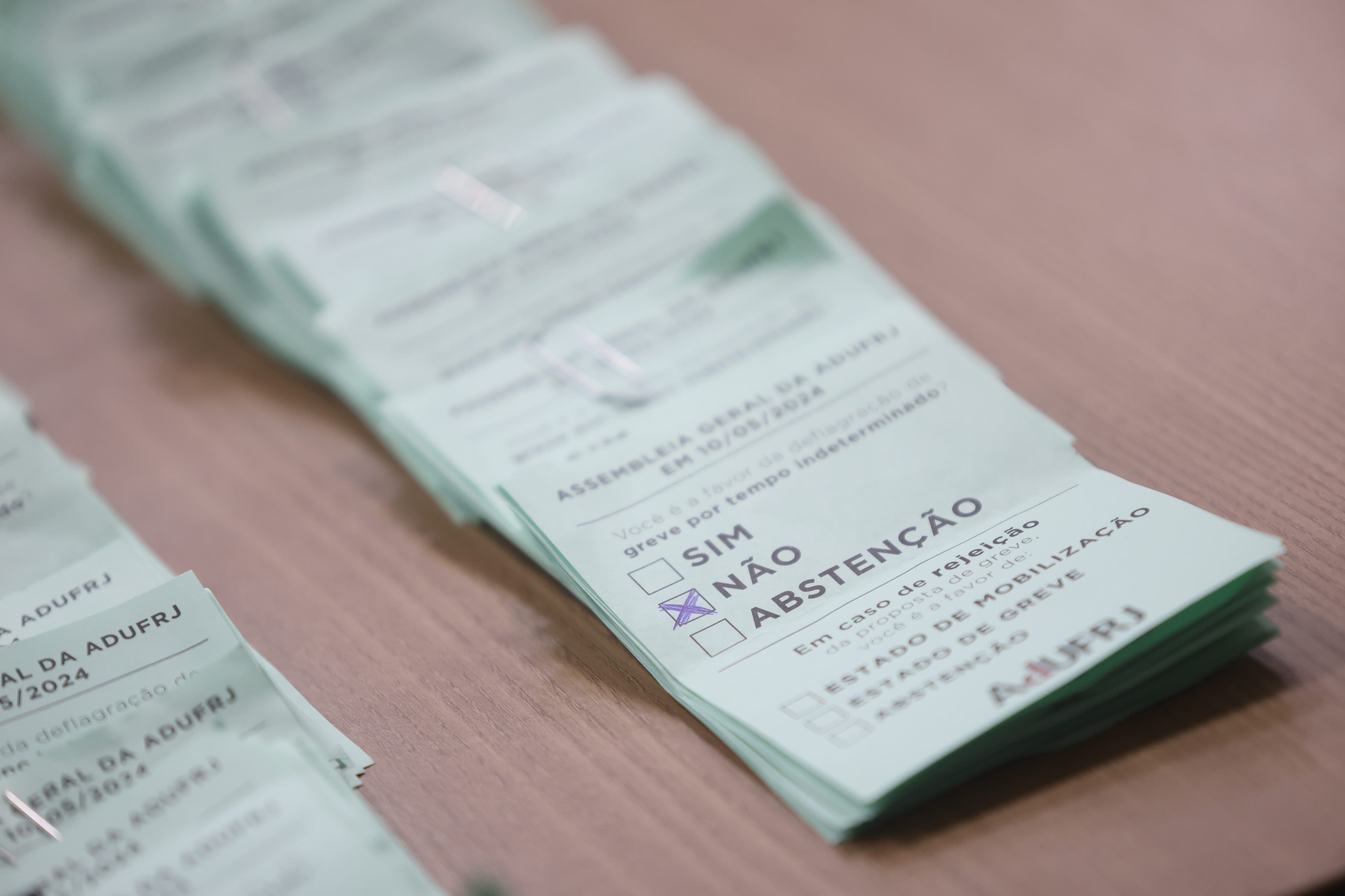 O Andes participou, na segunda-feira (14), com o Sinasefe e o Proifes, de duas mesas de negociação agendadas pelo governo: uma para tratar sobre a carreira EBTT e outra sobre o Magistério Superior. Ambos os encontros discutiram pautas não financeiras, ou seja, sem impacto econômico.Os professores da UFRJ rejeitaram a proposta de greve por 364 votos contra 234 e cinco abstenções, além de dois brancos e dois nulos. A assembleia foi realizada no auditório Quinhentão, do CCS, e no Auditório do NUPEM, em Macaé, com votação em urna.