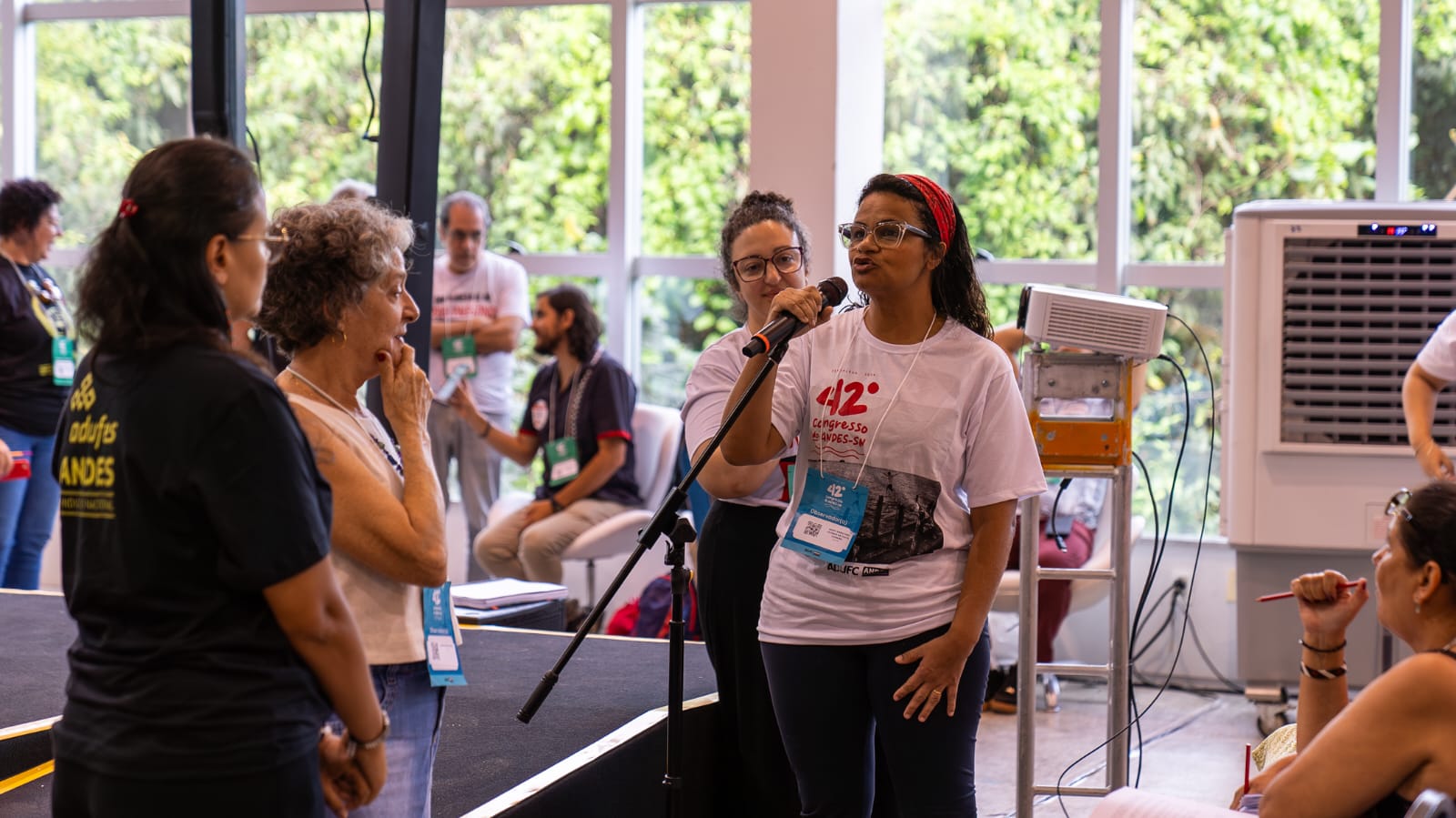Uma das atividades do primeiro dia de congresso foi a instalação da Comissão de Enfrentamento ao Assédio. A comissão é composta por cinco docentes da diretoria nacional do Andes e da diretoria da seção sindical anfitriã do encontro, a ADUFC. A aposta é que a criação de um grupo específico para receber demandas de assédio possa contribuir para coibir as agressões, além de punir eventuais agressores. “A comissão tem papel de acolhimento da vítima, de enfrentamento ao assédio, mas também é um espaço pedagógico”, ressalta a professora Maria Inês Escobar, diretora da ADUFC. “É importante que essa comissão exista para dizer que o assédio acontece muitas vezes entre nós. É um processo brutal, cujas vítimas são, majoritariamente, mulheres”.