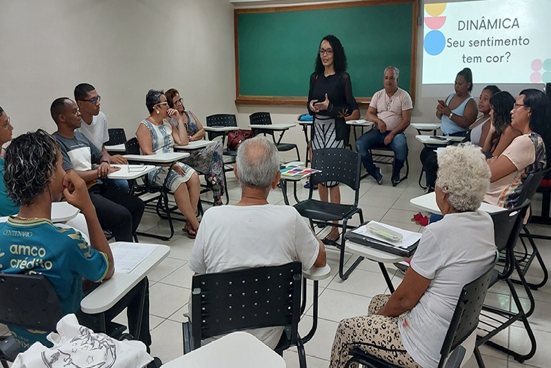 Quem também se encontrou no projeto foi Natália de Souza, do quarto semestre da licenciatura em Português: “Uma aluna me marcou muito, Dona Ednea, de 50 anos. Ela passou por diversas situações na vida dela, muitas perdas, mas sempre estava presente e participando da aula. Aprendo com a história de vida deles. Procurei o projeto porque me interessei pela oportunidade de lecionar. A extensão está sendo muito importante na minha vida, pessoal e profissional. Consegui encontrar meu caminho e meu ofício, e entender quem sou no aprendizado da educação”. Natália ensina uma turma diversa, com alunas como Monique e Kaylanne Costa, com 21 e 17 anos, e Sebastião Felizardo e Maria de Fátima, na casa dos 70 anos. Todos estão no ciclo intermediário.