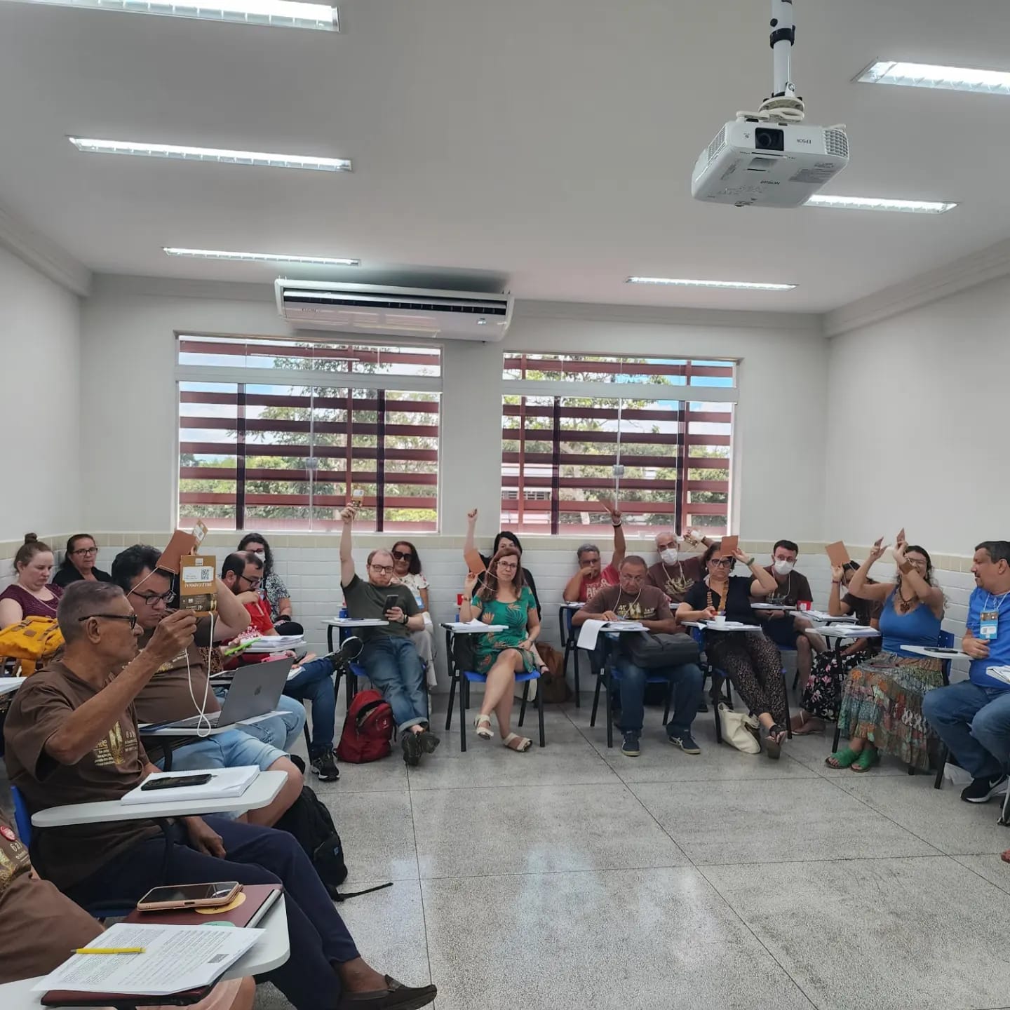 O segundo dia do Congresso do Andes, em Rio Branco, no Acre, foi dedicado aos debates em grupos mistos. São 15 grupos, com uma média de 30 delegados, além de representantes da diretoria do Sindicato Nacional. As discussões são baseadas em textos de apoio e nas chamadas TRs, textos de resolução, apresentados previamente pelos delegados. Os temas são amplos e a metodologia de trabalho, bastante polêmica. A diretoria da AdUFRJ, por exemplo, condena enfaticamente o método.