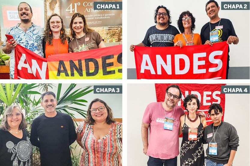 Os candidatos se inscreveram no último dia do congresso e apresentaram os três nomes que compõem o triunvirato de cada grupo. O regimento exige que as chapas tenham 83 docentes. A nominata completa pode ser entregue até abril. Conheça um pouco das chapas e leia trechos dos manifestos das candidaturas.