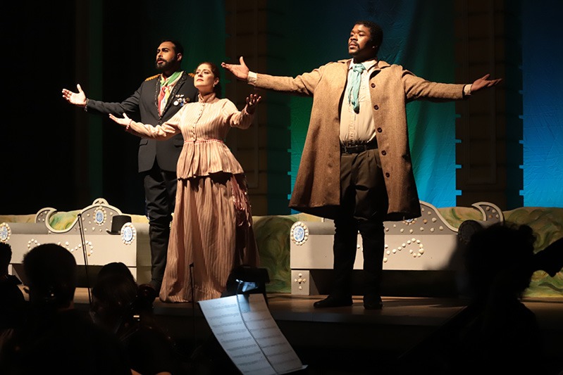 Fotos: Alessandro CostaIsadora CamargoO ex-aluno e ex-professor André Rebouças “voltou” à Escola Politécnica da UFRJ. Dessa vez, como protagonista da ópera “O Engenheiro”, que encerrou seu ciclo de apresentações na última quinta-feira (7), no Auditório Horta Barbosa, do Centro de Tecnologia. O espetáculo começou às 13h, e os futuros engenheiros do CT aproveitaram o intervalo do almoço para lotar a plateia. Marcos Fernandes, estudante de Engenharia Naval, saudou a iniciativa: “A arte devia vir mais pra cá”.