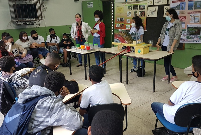 Eleonora recorda que o Encosta Viva se desenvolveu muito desde 2015, quando o tema dos deslizamentos foi introduzido no ECV pelo professor Marcos. “Em 2000, começamos a fazer os Sábados da Ciência, eventos temáticos abertos ao público. Foi assim que o professor Marcos chegou com seu projeto ao ECV. A partir daí começamos a escrever projetos juntos, com esse olhar sobre as desigualdades. As oficinas nas escolas com alunos de extensão são uma experiência muito rica, o projeto tem um viés social importante”, sustenta Eleonora.
