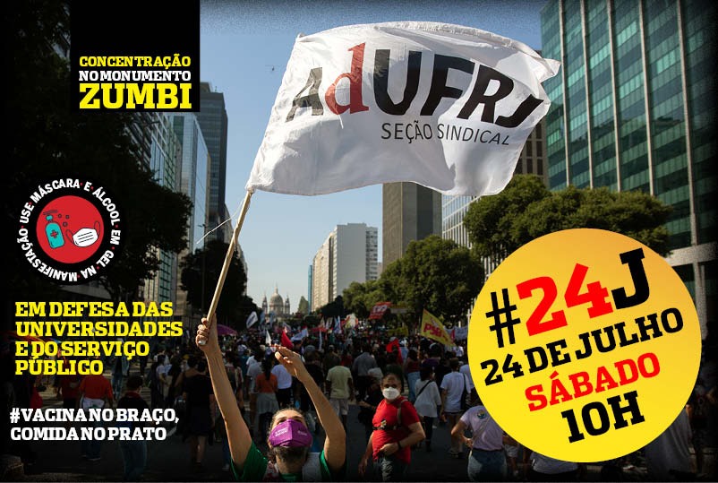 Por tudo isso, e por muito mais que não cabe nesse editorial, nos mantemos participando de forma ativa e determinante para a realização dos atos da campanha nacional #Fora Bolsonaro. Precisamos que ela se amplie ao máximo, que seja de cada um e de todos nós. Precisamos dar forma e cor à nossa insatisfação. Precisamos estar juntos e fortes, porque não temos dúvida de que o que está sendo jogado nesse momento é a nossa sobrevivência — seja como instituição pública, seja como nação democrática. Por isso, iremos às ruas mais uma vez, em 24 de julho, às 10 horas, em frente ao monumento Zumbi dos Palmares.