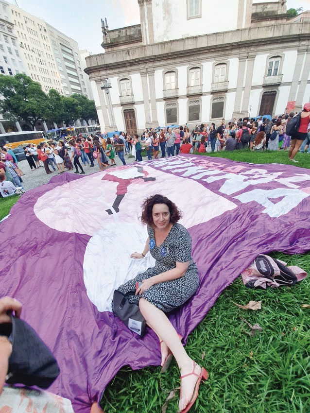 Em 2020, as mulheres da AdUFRJ estenderam um lençol lilás no gramado na Candelária, no qual muitas delas, e outras manifestantes crianças, mães e avós posaram sentadas. Naquele momento, era o chão que dava suporte à nossa bandeira. Este ano, tivemos que subir, que voar.