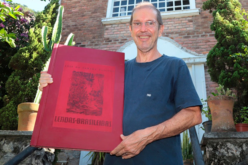 FILHO DO EX-REITOR, Rodrigo Lessa exibe um livro do historiador Luis da Câmara Cascudo sobre lendas brasileiras - Fotos: Alessandro Costa“Estamos vivendo um esvaziamento de bibliotecas e de fontes de consulta. Mesmo a biblioteca do estado não tem uma coleção sobre Rio de Janeiro como deveria”. Este é um dos argumentos da ex-coordenadora do Fórum de Ciência e Cultura da UFRJ, professora Beatriz Resende, para defender a permanência do acervo de 17 mil volumes do ex-reitor Carlos Lessa na cidade.