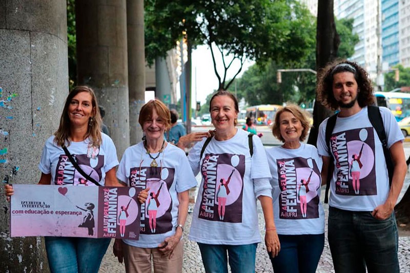 Professora Maria Lúcia (segunda, da esq. para a dir.), no 8 de marçoSegundo Aurélio, o dicionário – que os jovens certamente imaginam ser um velho aposentado –, militância é ação de “membro ativo, participante, apóstolo”. Aquele que atua em alguma organização: partido, sindicato, seita... Tempo houve em que o termo se associava a posições situadas à esquerda do espectro político. Hoje, a realidade refuta, com veemência, tal visão. Concisa por suposto, a definição em verbete não expressa a complexidade da prática da militância. E essa é uma questão importante para nós na AdUFRJ. Trata-se da distinção entre militância partidária e militância sindical.