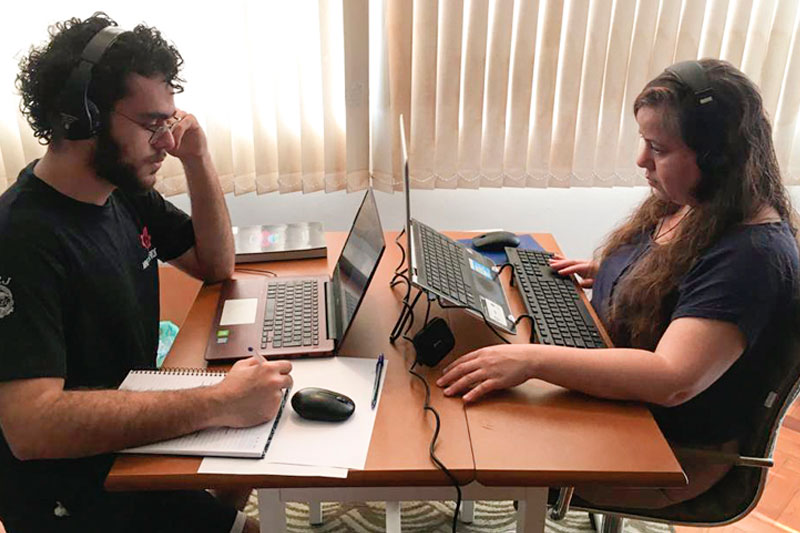 Ícaro Sol, estudante de Engenharia, e a mãe, a professora Luciana Salgado, da Matemática, sintetizam em um lar a experiência da comunidade acadêmica nas aulas remotasA adaptação ao ensino remoto é bastante diversificada entre os estudantes. Para alguns, a experiência se revela mais leve; outros não se sentem tão confortáveis. Enquanto alguns veem as vantagens de não precisarem se deslocar até o campus; outros necessitam fazer grandes deslocamentos para conseguir uma interntet de qualidade.
