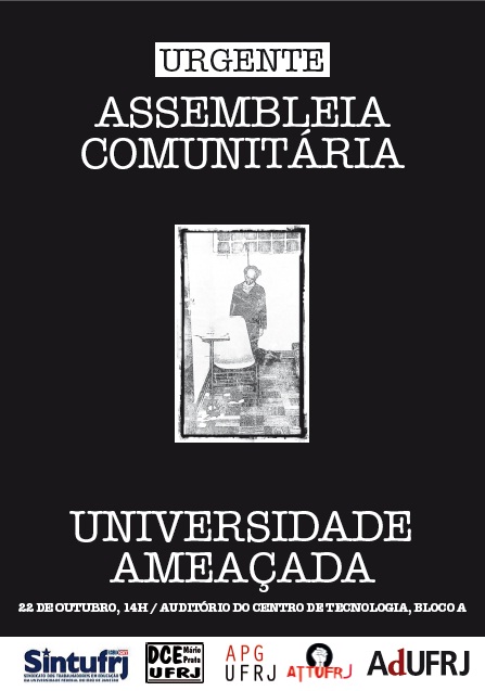 A Adufrj conclama todas as professoras e professores a participarem da Assembleia Comunitária da UFRJ. O momento é muito grave e de sérias ameaças à democracia, aos direitos sociais e à universidade pública A Adufrj conclama todas as professoras e professores a participarem da Assembleia Comunitária da UFRJ. O momento é muito grave e de sérias ameaças à democracia, aos direitos sociais e à universidade pública. Por isso, docentes, técnicos, estudantes de graduação e pós-graduação e profissionais terceirizados estarão juntos em assembleia nesta segunda-feira, 22, às 14h, no auditório do Centro de Tecnologia - Bloco A.