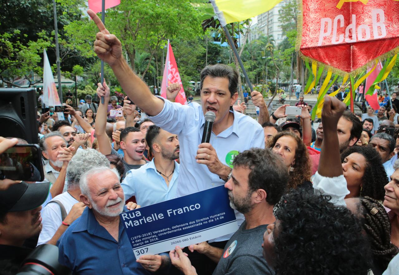 O candidato do PT à Presidência, Fernando Haddad, criticou nesta sexta-feira (19) no Rio a lentidão da Justiça Eleitoral para reagir ao “tsunami cibernético” que tomou conta da campanha eleitoral. O candidato do PT à Presidência, Fernando Haddad, criticou nesta sexta-feira (19) no Rio a lentidão da Justiça Eleitoral para reagir ao “tsunami cibernético” que tomou conta da campanha eleitoral. Haddad se referia às notícias falsas e à denúncia, publicada pelo jornal “Folha de S.Paulo”, de que a campanha de seu adversário, Jair Bolsonaro (PSL), financiou o envio de mensagens em massa pelo WhatsApp, o que caracteriza crime eleitoral. “Temos uma Justiça analógica para crimes virtuais”, afirmou Haddad, que participou de plenária no Clube de Engenharia com reitores de universidades federais, professores e ativistas. O candidato também criticou a imprensa: “Como foi retratada a denúncia no principal telejornal de ontem? Como se o Haddad estivesse acusando o Bolsonaro”, reclamou. E seguiu: “Para minha surpresa, quem batia no peito dizendo que a Justiça eleitoral não ia aceitar fake news, sob pena até de anular o pleito, silêncio absoluto”. A plenária foi organizada pela Andifes (Associação Nacional dos Dirigentes das Instituições de Ensino Superior), pela Conif, que reúne reitores das instituições federais de ensino técnico e científico, pelo Clube de Engenharia e pela Aepet (Associação dos Engenheiros da Petrobras). O presidente da SBPC (Sociedade Brasileira para o Progresso da Ciência), Ildeu de Castro Moreira, leu para Haddad questões já enviadas pela SBPC a respeito do financiamento para a ciência, cobrando respostas do candidato. Assistiram ao ato reitores de várias federais, entre eles Roberto Leher, da UFRJ, e diretores da Adufrj (Associação dos Docentes da UFRJ). Haddad afirmou que, se eleito, manterá a autonomia orçamentária e de gestão das universidades. Disse também que se compromete a, na indicação de reitores das federais, respeitar a comunidade acadêmica e escolher o candidato mais votado por professores, técnicos e estudantes. Bolsonaro já afirmou que, na indicação do procurador-geral da República, não quer nomes de esquerda, o que despertou na comunidade acadêmica o temor de que, caso o candidato do PSL seja eleito, o mesmo princípio se aplique à escolha de reitores. O petista voltou a desafiar Bolsonaro para os debates eleitorais, mas também cobrou das emissoras de TV que, caso seu adversário mantenha a estratégia de não comparecer, sejam realizadas entrevistas, e que a cadeira de Bolsonaro fique vazia. Na avaliação de Haddad, o Brasil vive hoje um momento de ameaça a direitos fundamentais, sociais e políticos. O petista lamentou que seja necessário voltar a uma agenda dos anos 50, defendendo a Petrobras e os direitos trabalhistas, diante das propostas de privatização e aumento da terceirização. “A mesma elite que atacava a Petrobras e s direitos trabalhistas encontrou no meu adversário um representante de seus anseios”, afirmou. Segundo Haddad, Bolsonaro representa essa ameaça, no pior formato possível. “A elite brasileira procurou um (Emmanuel) Macron (presidente francês), que apesar das críticas é um estadista, e apareceu o Bolsonaro”, afirmou. O petista disse que seu adversário representa o que houve de pior no regime militar: a truculência e a intolerância. “Porque o regime militar era nacionalista, e ele é um entreguista”, destacou. “Vou continuar a brigar por esse país, pelos pobres desse país e pela democracia. Não vamos abdicar de defender esse país”, afirmou Haddad. Após o evento, ele saiu em caminhada pelo centro do Rio ao lado de militantes do PT e de partidos aliados.