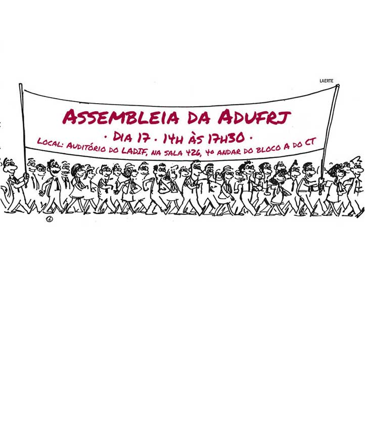 Convencida de que a Constituição Cidadã de 1988 e a universidade pública estão ameaçadas, a diretoria da Adufrj realiza uma série de atividades, muitas delas conjuntas com os técnicos e estudantes O cenário é crítico, as perspectivas são sombrias e só há uma chance de a civilização triunfar sobre o medo: unir as forças democráticas e trocar a perplexidade causada pelo primeiro turno pela ação concreta no segundo. Na prática, significa fazer campanha dia e noite, desmontar fake news, cobrar a participação em debates, argumentar incansavelmente mesmo com aqueles que, por desesperança política, estão optando por uma solução truculenta para o Brasil. Convencida de que a Constituição Cidadã de 1988 e a universidade pública estão ameaçadas, a diretoria da Adufrj está preparando uma série de atividades, muitas delas conjuntas com os técnicos e estudantes. As estratégias de ação, como a formação de uma frente pela democracia, serão discutidas em assembleia docente, no dia 17. Propostas antagônicas para o ensino superior aparecem nos dois programas eleitorais. Na semana passada, o deputado eleito Eduardo Bolsonaro, ex-aluno da UFRJ, divulgou vídeo condenando a “politização ideológica” das aulas, pregando a privatização da universidade e propondo a distribuição de vouchers para “pobres” estudarem. Já a chapa Haddad-Manuela firmou compromisso com a expansão do ensino superior público, com a recomposição do orçamento das agências de fomento, a revogação da Emenda do teto de gastos, a ampliação das políticas de assistência estudantil, a autonomia e liberdade de cátedra. No segundo turno, dois eixos de debate estão em jogo: o econômico e o dos direitos fundamentais. O Boletim da Adufrj levou a professores, especialistas em comunicação e ativistas interrogações sobre o segundo turno. O que fazer? Os entrevistados apontaram três linhas de ação: a estratégia política, a de comunicação e de mobilização. Este Boletim reflete sobre elas e aponta caminhos frente à sombra autoritária. Os desenhos são da chargista Laerte, publicados em “Ilustração Sindical” e liberados para domínio público.