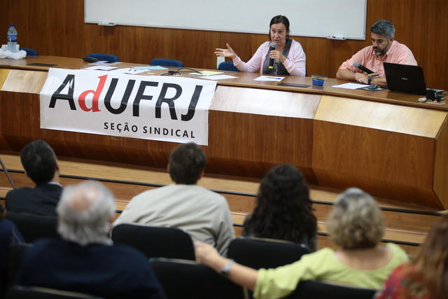 A Adufrj vai oferecer o curso de extensão “Interpretações sobre o Brasil contemporâneo”. Podem se inscrever professores, alunos e técnicos-administrativos da UFRJ, além do público externo. O curso acontece no período de 12 de setembro a 24 de outubro, sempre às quartas-feiras e aos sábados, com foco em temas políticos e econômicos. A professora e socióloga Maria Lúcia Teixeira Werneck Vianna, presidente da Adufrj, coordena a iniciativa e explica o objetivo da empreitada: “Resolvemos promover este curso porque achamos importante compartilhar o conhecimento produzido pelos professores. É uma forma de aumentar a qualificação de técnicos e estudantes e colaborar com a troca entre os professores”, avalia. O único pré-requisito para se inscrever é ter graduação. A inscrição poderá ser feita pelo site da Adufrj: www.adufrj. org.br. Lá você encontra também a programação completa. “Os palestrantes são reconhecidos nacional e internacionalmente. Esperamos que a participação da comunidade universitária seja ativa”, diz Maria Lúcia. No futuro, a diretoria pretende oferecer outros cursos sobre temas variados. “Este é apenas o primeiro. Queremos promover outros e colocar a Adufrj na linha da formação política, sindical e social”, conclui a docente. INFORMAÇÕES Cada uma das aulas será ministrada por um renomado professor da UFRJ ou de outras universidades públicas. 12/9 - Claudio Salm - Instituto de Economia da UFRJ 15/9- Laura Carvalho - Faculdade de Economia, Administração e Contabilidade da USP 19/9 – Esther Dweck - Instituto de Economia da UFRJ 22/9 – David Kupfer - Instituto de Economia da UFRJ 26/9 – Carlos Medeiros - Instituto de Economia da UFRJ 29/9 – Flávio Gomes - Instituto de História da UFRJ 03/10 – Joel Birman - Instituto de Psicologia da UFRJ 06/10 – Charles Pessanha - Instituto de Economia da UFRJ 10/10 – José Mauricio Domingues - Instituto de Estudos Sociais e Políticos da Uerj 17/10 – Plínio de Arruda Sampaio Jr. - Instituto de Economia da Unicamp 20/10 – Raquel Rolnik - Faculdade de Arquitetura e Urbanismo da USP 24/10 – Wanderley Guilherme dos Santos - Instituto de Estudos Sociais e Políticos da Uerj Início: dia 12 de setembro Aulas: às quartas-feiras, das 17h30 às 20h30; aos sábados, das 9h às 12h30. Campus da UFRJ na Praia Vermelha Acompanhe as aulas por aqui: https://adufrj.org.br/curso-adufrj-interpretacoes-sobre-o-brasil-contemporaneo/