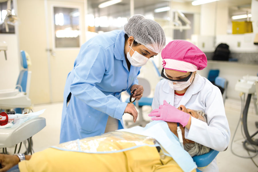 Os pacientes são examinados por alunos de variados semestres. “Para os alunos, é como um estágio. Eles se aprimoram, e ainda podemos prestar um serviço à sociedade”, afirmou a chefe do departamento de Clínica Odontológica, professora Amara Eulalia Chagas Santos, vice-diretora da faculdade - de onde também foi aluna.