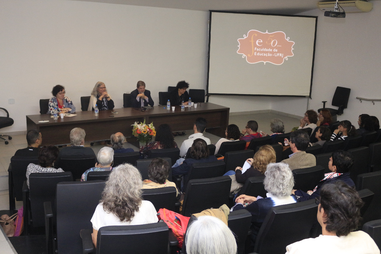 “Temos um compromisso social e político de contribuir para a construção de um ensino mais democrático”, afirmou a diretora Carmen Teresa, durante sessão solene da Congregação da unidade A Faculdade de Educação comemorou 50 anos na manhã do dia 10, durante sessão solene da Congregação, no campus da Praia Vermelha. A diretora Carmen Teresa Gabriel Le Ravallec destacou o papel da instituição no momento conturbado que o país passa. “Temos um compromisso social e político de contribuir para a construção de um ensino mais democrático”, afirmou. “É nosso desafio driblar as dificuldades e afirmar a Faculdade de Educação como um ambiente de formação e afirmação do espaço público”, acrescentou a professora. Desde 2015, o curso de graduação em Pedagogia oferecido pela unidade recebe a nota máxima de avaliação do Ministério da Educação. “O corpo docente pensa na sociologia, história, psicologia da educação não só para a nossa área, mas para todas as licenciaturas e unidades”, completou Carmen Teresa. O reitor Roberto Leher, que é professor da faculdade, parabenizou a unidade pela data especial: “Uma universidade pública não pode deixar de ter uma área de educação audaciosa, projetiva e com muita vitalidade em relação ao seu futuro. Comemorar 50 anos da Faculdade de Educação é um marco para a UFRJ”, disse. Diante de um bolo preparado especialmente para a confraternização, os convidados cantaram parabéns e celebraram a importância da FE para a universidade e a área de educação. Mas as comemorações continuam até o final do ano. Palestras e mesas de debate estão sendo programadas, além de exposições fotográficas, exibição de filmes e intervenções de arte no campus da Praia Vermelha. “A ideia é criar um contexto de diálogo com outras manifestações artísticas e que podem nos ajudar a apresentar o que é a Faculdade de Educação”, observou a professora Angela Santi.