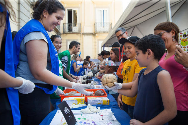 A feira do Dia da Ciência lotou os jardins do Museu Nacional e mostrou interesse da população pelo tema - enquanto o governo federal corta verba do setor. Mais de 20 organizações, como a Adufrj, participaram. Teve telescópio para ver o sol, teve aula sobre mosquito da dengue e criança aprendendo a montar moléculas químicas com jujubas coloridas. Foi como se os jardins do Museu Nacional, na Quinta da Boa Vista, tivessem se transformado em laboratórios abertos, onde era possível aprender e ensinar sobre o impacto da ciência no dia a dia de cada um. Num domingo de sol e muito calor, o Dia Nacional da Ciência mostrou um surpreendente interesse da população pelos experimentos científicos _ em contraste com o explícito desinteresse do governo federal, que corta sucessivamente o orçamento do setor de ciência e tecnologia no país. Mais de 20 organizações científicas, a Adufrj entre elas, apoiaram o evento, que foi montado como uma feira de ciências e lotou os jardins do Museu. Para o presidente da Academia Brasileira de Ciências, Luiz Davidovich, ficou claro o interesse do cidadão comum pelo tema. "É um contraste com o desinteresse que temos visto por parte dos governos federal e estadual, num panorama desastroso de cortes e desprestígio. Este dia é um dia de resistência", afirmou Davidovich, lembrando que o orçamento federal para a área de ciência e tecnologia é hoje um terço do que se tinha em 2013. Para ele, a saída é cobrar dos parlamentares que, na hora das decisões sobre o orçamento, destinem recursos para o setor. "A simpatia e a solidariedade da população ficaram evidentes. É preciso mostrar que, para que tudo isso aconteça, a ciência precisa de orçamento, de uma política eficaz no setor. E não é o que temos visto por parte desse governo", afirmou a vice-presidente da Adufrj, Ligia Bahia. Parlamentares como Carlos Minc (PT-RJ) e Jandira Feghali (PCdoB-RJ), além da candidata a deputada federal Tatiana Roque (PSOL-RJ), professora da UFRJ e ex-presidente da Adufrj, acompanharam o ato. A vice-reitora Denise Nascimento representou a UFRJ. O dia também lembrou os 70 anos da Sociedade Brasileira para o Progresso da Ciência. Uma das responsáveis pela organização do evento, a conselheira da SBPC Ana Tereza Ribeiro de Vasconcelos agradeceu o apoio de entidades e institutos de pesquisa e destacou a necessidade de obter o apoio efetivo da população. Lembrou que a produção científica demanda tempo, estudo e investimento, e que é preciso mostrar isso à comunidade. Uma equipe do Instituto de Microbiologia da UFRJ apostou em ensinar como uma atitude corriqueira, a lavagem correta das mãos, tem impacto efetivo no controle de doenças. Uma caixa com luz negra permitia observar as mãos antes e depois da lavagem. Kits com lâminas de laboratório mostravam a quantidade de bactérias em cada objeto que manuseamos, como uma maçaneta de porta e um celular. Acompanhadas pelos pais, crianças faziam fila para acompanhar os experimentos. Marina Silva, mestranda em Turismo na UFF, levou o filho Vicente, de 3 anos, para ajudar a montar esqueletos de dinossauro. "A gente precisa mostrar para os filhos que a ciência está na vacina, no dia a dia, em tudo", afirmou.