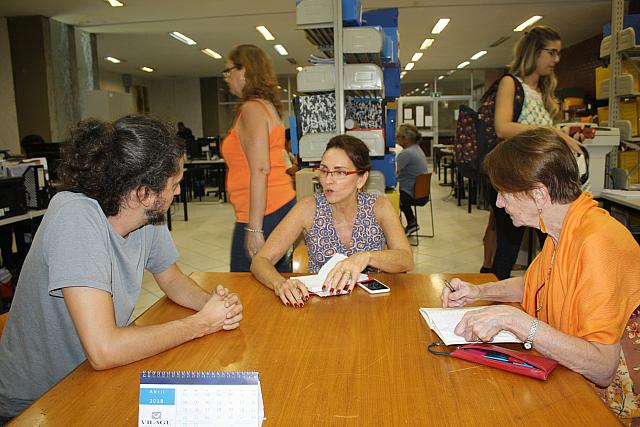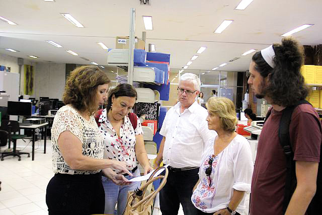 Conversar com os colegas, ouvir propostas e verificar condições de trabalho dos professores. Esses são alguns objetivos dos diretores da Adufrj ao realizar um ciclo de visitas às unidades. O local escolhido para começar a iniciativa, no último dia 2, não poderia ser mais emblemático: o setor administrativo da EBA. Um incêndio em outubro de 2016 no prédio da reitoria desalojou parte da EBA. Hoje a direção da Escola está precariamente instalada em uma biblioteca da Faculdade de Letras, sem telefone ou divisória entre setores. Neste cenário, três representantes da associação foram recebidos pela diretora Madalena Grimaldi e pelo vice, Hugo Borges.“É uma das unidades em situação mais crítica”, disse Felipe Rosa, diretor da Adufrj. “É um choque. São condições muito difíceis”, reforçou Maria Paula Araujo.