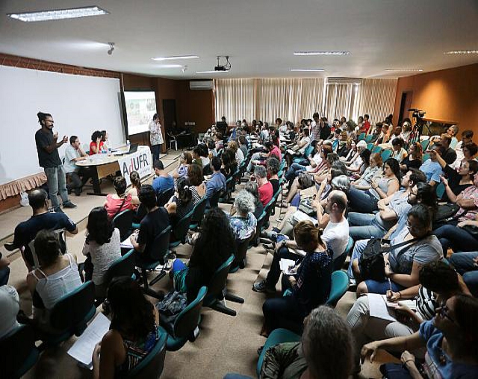 A Assembleia Geral da Adufrj discutiu uma proposta de greve no dia 14 de setembro em defesa dos serviços públicos e contra a reforma da Previdência. A data foi indicada pelo Andes, em articulação com demais trabalhadores da educação, servidores públicos e trabalhadores do setor privado. O segundo ponto da reunião foi a escolha de delegados para o 3º Congresso Nacional da CSP-Conlutas, de 12 a 15 de outubro de 2017, São Paulo, SP. A assembleia foi realizada em 30 de agosto, quarta-feira, de 8h30 às 14h, no Centro de Tecnologia (sala E-212), em Macaé (sala 304B do Polo Universitário) e no Instituto de Filosofia e Ciências Sociais (Salão Nobre). Foi utilizada tecnologia de videoconferência para a conexão dos três locais. Agenda: 8h30 – primeira convocação com quorum mínimo de docentes 9h – início da AG com qualquer número de docentes 9h às 9h30 – informes 9h30 às 11h30 – debate sobre mobilização e greve geral contra o projeto de retirada de direitos dos servidores e contra a reforma da previdência 11h30 às 14h – votação em urna 14h – apuração Pauta: 1. Greve geral dos docentes federais em 14 de setembro de 2017. 2. Escolha de delegados para o 3º Congresso Nacional CSP-Conlutas, 12 a 15 de outubro de 2017, São Paulo, SP.