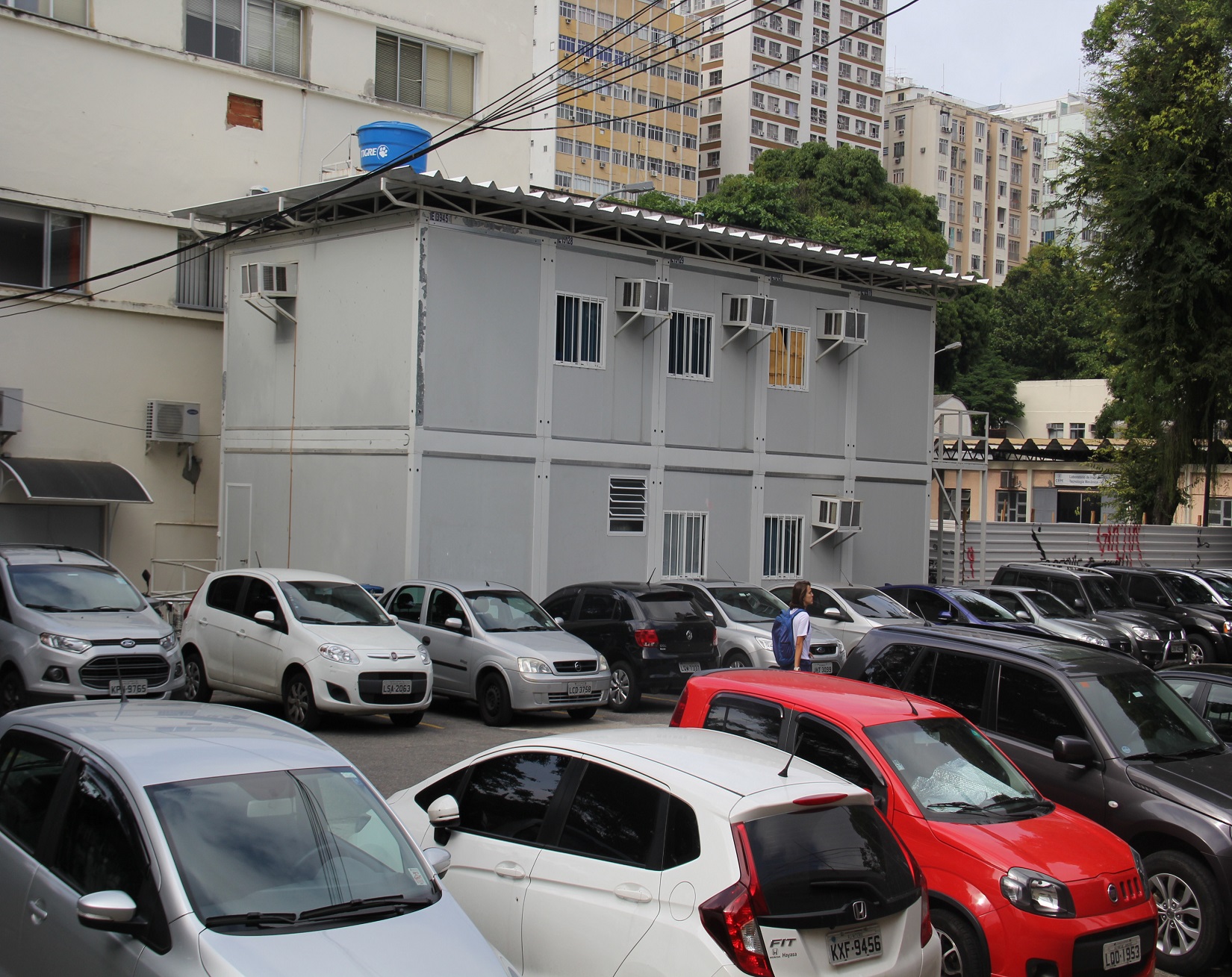 A paisagem do campus da Praia Vermelha vai ganhar novos “contêineres”. Um “prédio” de três pavimentos composto por módulos habitacionais será erguido no estacionamento central. As obras começaram em 15 de maio. A previsão de entrega é em 18 de agosto, início do segundo semestre letivo. Serão, ao todo, 135 módulos: 50 foram herdados de um convênio com o Ministério da Justiça. De acordo com a Prefeitura Universitária, no local serão remontados outros 85 contêineres da UFRJ, atualmente concentrados na área dos campos de futebol. O prefeito Paulo Mário Ripper disse que a obra busca “uma maior proximidade com as unidades acadêmicas”. Ripper destaca que o cumprimento do cronograma independe dos problemas com o orçamento da universidade. “O financiamento da compra e da desmontagem e remontagem (dos módulos) é 100% do Ministério da Justiça”, afirma. O empreendimento estava previsto no acordo decessão do espaço do “campinho” para base de operações de segurança nos Jogos Olímpicos e Paralímpicos do ano passado. O custo do projeto é de R$ 2,6 milhões. Dança das cadeiras no campus dá em protesto