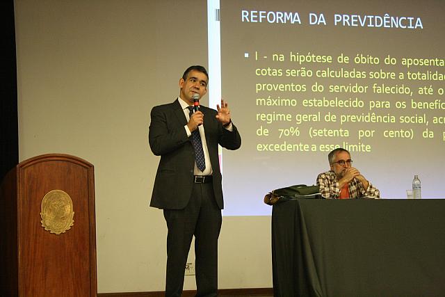 Ele afirmou que não há relação entre a PEC e o governo Temer. “Basta olhar as datas. Em 2015 sugerimos – e foi aprovada – a alteração dos parágrafos 3º e 4º do Código Eleitoral, pela Lei 13.165. Na época, a presidente era Dilma Rousseff”, justifica. As mudanças no Código Eleitoral foram feitas para indicar que novas eleições diretas sejam realizadas para sucessão de governadores que sofressem impugnação de mandato. “Mas o procurador geral da República apresentou uma ação direta de inconstitucionalidade ao artigo 224. Por isso, apresentamos a PEC. Não tem nada a ver com o momento político atual”, argumentou. A partir do momento em que Michel Temer assumiu a presidência da República, “começou uma enorme pressão contra as eleições diretas”, afirma o parlamentar. Para ele, só será possível retomar a normalidade do país a partir de um novo pleito com participação popular. “Qual a representatividade, num cenário como este, de realização de eleições indiretas?”, questionou. Miro rebateu o argumento de que é necessário preservar a Constituição e fazer a sucessão presidencial por voto indireto. “Nós já temos cem emendas à Constituição desde 1988. Existem em tramitação no Congresso mais 1.500 propostas de emendas. Que Constituição eles querem defender?”, completou. Previdência O parlamentar aproveitou o momento para se posicionar contrariamente à Reforma da Previdência. Para ele, emendas constitucionais não resolvem e nunca resolveram os gargalos da Previdência Social. Entre artigos, incisos e parágrafos, já foram modificados 192 dispositivos: 116 na Emenda Constitucional 20/1998; 55 na Emenda Constitucional 41/2003; e 21 na Emenda Constitucional 47/2005. Todos eles tratam do sistema de Previdência Social. “A atual PEC 287 altera mais 197 dispositivos da Constituição. O problema da Previdência é o que fazem com o dinheiro. Não existe déficit. O Brasil tem dinheiro”. Diretas ontem Os professores da Coppe Ericksson Almendra e Luiz Pinguelli Rosa também participaram do debate. Eles apresentaram a memória da Adufrj no processo de abertura política, na década de 1980. Almendra foi presidente da Adufrj entre 1981 e 1983. “Uma das primeiras reuniões em que os professores da UFRJ discutiram como se inserir nas reformas do país e da universidade aconteceu exatamente nesta sala (auditório G-122, onde ocorria o debate), em 1978”, relembrou. Em 1979, a Adufrj foi criada já num contexto de ajudar a “organizar as grandes greves” que começavam a eclodir no país. “A Adufrj foi criada com o intuito de discutir os interesses dos professores, sim, mas, principalmente, de contribuir para um movimento muito mais amplo de luta pela redemocratização”, afirmou. Pinguelli foi o primeiro presidente da Adufrj e depois foi presidente da Andes – na época, Associação Nacional dos Docentes do Ensino Superior. “Havia um entusiasmo gigantesco com as eleições diretas”, ele lembrou. “Fiquei muito decepcionado quando não houve a aprovação das diretas. Tanto que não apoiei Tancredo (Neves, candidato da oposição) nas eleições indiretas. Não por ser o Tancredo, mas porque achava que aquele tipo de eleição era muito ruim para o país”, argumentou. [caption id="attachment_7586" align="alignright" width="300"]