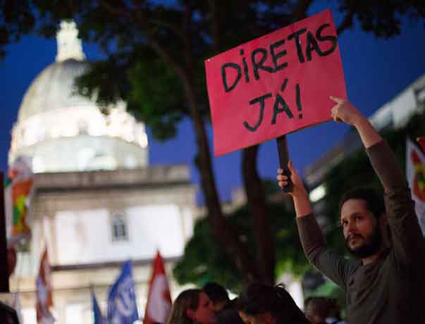 Cobrança por eleições diretas para presidente e repúdio às reformas dominaram a mobilização do dia 18 Fotos: Fernando Souza “Diretas Já/O povo quer votar!”. As palavras de ordem que sacudiram o Brasil nos anos 80 voltaram a ecoar ontem nas principais cidades do país. No Rio, a manifestação pela queda de Michel Temer e contra as reformas trabalhista e da Previdência reuniu mais de 50 mil pessoas no Centro. Um número expressivo, já que o ato foi convocado apenas na véspera por centrais sindicais, movimentos sociais e estudantis, após a revelação das delações envolvendo o presidente. A Adufrj participou da organização e chamou todos os docentes da universidade para engrossar a atividade. O setor da Educação compareceu em peso à manifestação. Professores de todos os níveis e das redes pública e particular eram identificados por meio de cartazes e adesivos contra o desmonte do ensino e retirada de direitos. Um enorme balão do Andes indicava o ponto de encontro dos docentes federais. Muitos professores da UFRJ prestigiaram o ato. Arthur Bezerra, do Programa de Pós-Graduação em Ciência da Informação (IBICT-ECO/UFRJ), foi um deles. Falou que vai a todas as manifestações desde o impeachment de Dilma Rousseff. Para ele, “o que está em curso é a destruição dos avanços sociais do país dos últimos 15 anos”. E, nesse sentido, “a educação é um dos (direitos) mais afetados”. Carlos Azambuja, da Escola de Belas Artes (EBA), concordou: “Era um governo sem legitimidade e agora sem respaldo nenhum para governar”. E completou: “Como professores, estamos acompanhando para ver o que irá acontecer. Por ora, é o caos. Em relação à universidade, estamos atentos para que a UFRJ não se tornar a Uerj amanhã”. Estudantes do DCE Mário Prata, da UFRJ, defenderam a democracia no país e nas universidades. “Desde o início, o governo disse a que veio com medidas que apenas reduzem os direitos dos trabalhadores e da juventude”, criticou Thaís Zacharia. “Os estudantes da UFRJ estão na rua até esse governo cair”, resumiu Julia Portes. Eleições e reformas em foco A convocação para ocupar Brasília (DF) no dia 24, data marcada para início da votação da reforma da Previdência, ocupou boa parte dos discursos. Parlamentares de esquerda também tiveram lugar no carro de som. O “Fora Temer” era consenso. “A Reforma da Previdência diz respeito diretamente às mulheres, que cuidam das crianças e idosos da família e cumprem dupla jornada com trabalhos domésticos”, destacou Tica Moreno, da Marcha Mundial das Mulheres (MMM). “Aposentar antes é justo sim!”, disse, criticando o aumento de tempo de contribuição feminina prevista na proposta do governo. O pronunciamento de Michel Temer, às 16h, negando a renuncia foi citado várias vezes: “Não adianta ficar torcendo pela televisão para o Temer cair”, disse Francisco Assis, coordenador do Sintufrj. “É o povo na rua quem tem que derrubar não só esse governo, mas esse projeto”. O protesto foi encerrado com o uso de bombas de gás lacrimogêneo pela Polícia Militar em conflito com mascarados que usavam pedras. Adufrj avalia ato Para a presidente da Adufrj, Tatiana Roque, a atividade foi bastante positiva, apesar do desfecho violento a partir da ação desmedida da polícia: “Considerando o pouco tempo da convocação, de um dia para o outro, foi um ato com muita gente e muito bom”, avaliou. “Mas para alcançarmos o objetivo das Diretas já, ainda precisa haver um esforço maior”, frisou. Tatiana também analisou o impacto da crise política causada pelas delações sobre Michel Temer na agenda das reformas. “Quanto mais próximas ficaram das eleições de 2018, mais improvável se tornará a aprovação”.