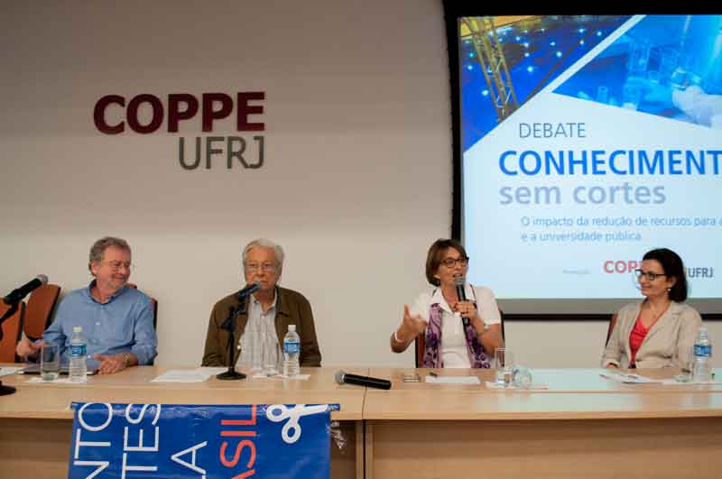 Conhecimento sem cortes Evento promovido pela Adufrj e Coppe traz Sociedade Brasileira para o Progresso da Ciência e Academia Brasileira de Ciências para discutir desmonte da C&T Elisa MonteiroEste endereço de email está sendo protegido de spambots. Você precisa do JavaScript ativado para vê-lo. “Um corte de 44% não é trivial”, destacou a presidente da Sociedade Brasileira para o Progresso da Ciência (SBPC), Helena Nader durante o encontro Conhecimento sem cortes: o impacto da redução de recursos para a C&T e a universidade pública, organizado pela Adufrj e Coppe, na manhã de terça-feira, 25. Em março, o governo federal reduziu o orçamento do Ministério da Ciência, Tecnologia, Inovações e Comunicações (MCTIC) de R$ 5 bilhões para R$ 2,8 bilhões. Nader confrontou o estrangulamento da pasta com o crescimento do setor na última década. A chegada da pós-graduação a todos os estados do país foi um exemplo. Ela também explicou o sentido internacional da Marcha pela Ciência: “Vinte e dois de abril foi escolhido por ser o dia da Terra, depois das declarações de (Donald) Trump de que a mudança climática era besteira. Foi um ato a favor da evidência científica”. E completou: “No Brasil, também sentimos a pressão anticientífica”. Já o presidente da Academia Brasileira de Ciências (ABC), Luiz Davidovich, deu ênfase ao papel da Ciência para o desenvolvimento nacional. O professor falou sobre países que, em situação próxima à do Brasil hoje, fortaleceram o setor. “Na crise, a Europa fez uma acordo de 3% do PIB para o desenvolvimento de pesquisas”, sublinhou. Davidovich projetou a relação entre orçamento e contingenciamento, mostrando que o problema se agrava a partir de 2010. “O orçamento atual é metade do de 2005 e um terço do de 2010. Esses são os números que explicam a crise”, resumiu. Para o professor, “um corte horizontal entre os ministérios indica que não há prioridades. Não há projeto de país”. Entidades avaliam situação do país A reunião contou com a mediação do diretor de Relações Institucionais da Coppe, Luiz Pinguelli Rosa. “O problema da Ciência nos toca diretamente, mas a situação na sociedade é grave”, disse, em relação às ameaças à educação. “Essa história de ‘Escola sem Partido’, no fundo, representa uma escola sem política”, avaliou. “A universidade deve ser sempre o lugar da discussão livre de ideias”. A diretora da Adufrj, Silvana Allodi e o diretor da Coppe, Edson Watanabe, organizadores saudaram o debate. “Não há quem discorde que se trata de um problema grave, especialmente no Rio de Janeiro”, destacou Allodi. [embed]https://youtu.be/rsS5pnKCq8c[/embed] onfira abaixo como foi o debate sobre o impacto da redução de recursos para a C&T e a universidade pública.