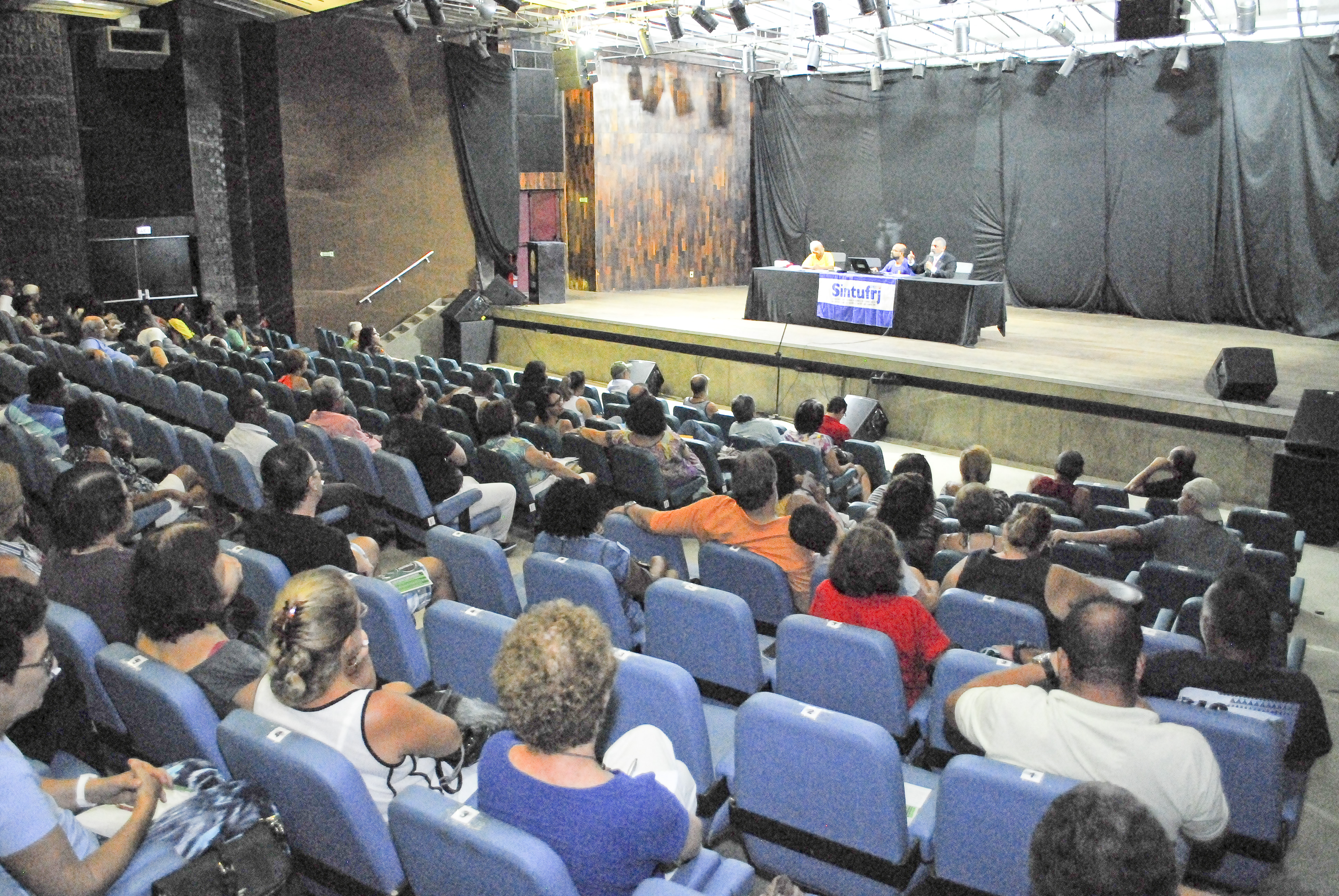O local é o Teatro de Arena da UFRJ na Praia Vermelha (Urca).