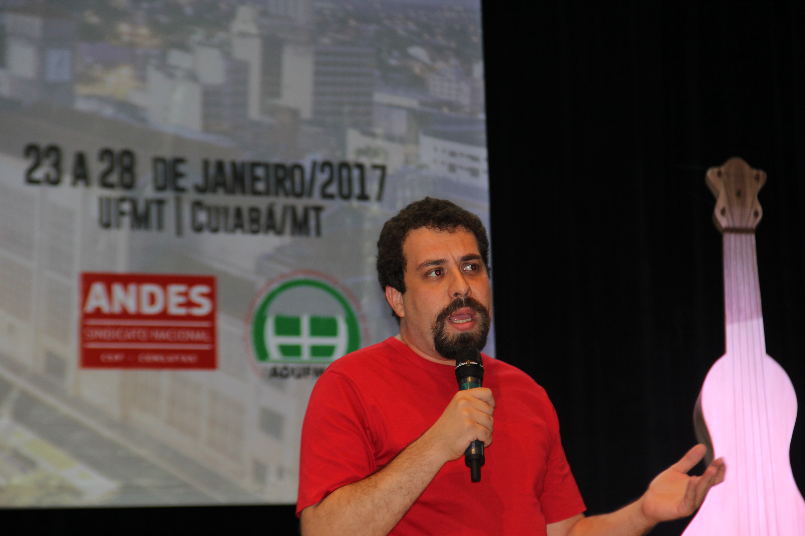 Boulos, preso e liberado recentemente após uma reintegração de posse realizada pela PM paulista, falou sobre a luta pela moradia no país. Explicou que a construção de novas unidades populares pelo programa Minha Casa Minha Vida não acompanhou o crescente déficit habitacional provocado pela especulação imobiliária. Ele agradeceu o apoio ao movimento recebido pelo Andes e declarou que o MTST continuará ao lado do Sindicato na defesa da universidade pública.