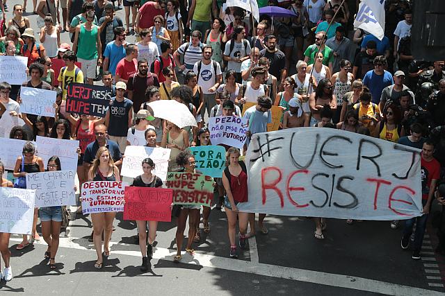 Um número expressivo de entidades sindicais e instituições como a Fiocruz, UFRJ, UFF, UniRio, Colégio Pedro II, Museu Nacional, e Centrais Sindicais como a CUT, CTB e CSP-Conlutas fizeram falas contra os cortes orçamentários que colocam em xeque as universidades estaduais. Além da UERJ, a Uezo e a Uenf também foram lembradas. Artistas como Osmar Prado e Wagner Moura mandaram seus apoios.