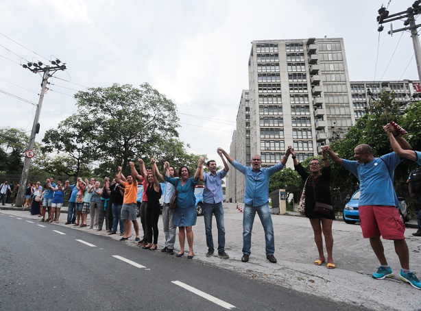 Em menos de quinze minutos, cerca de duas mil pessoas formaram uma corrente humana de quase duas voltas em torno do prédio principal da Universidade do Estado do Rio de Janeiro (UERJ), no Maracanã. A manifestação, realizada na parte da tarde, foi encerrada com apresentação do Bloco Carnavalesco Discípulos de Oswaldo (da Fiocruz), sem conflito com a polícia. A diretoria da Adufrj marcou presença no ato e ofereceu apoio à Asduerj.
