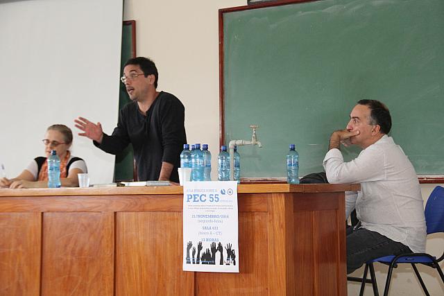 Alves Junior, do Departamento de Ciências Econômicas da Universidade Federal Rural do Rio de Janeiro, argumentou que a dívida cresce em relação ao Produto Interno Bruto sempre que há recessão em um país. Para freá-la, seria necessário estimular a economia, aumentando os gastos públicos. Mas a Proposta de Emenda à Constituição 55 (ex-PEC 241), em tramitação no Senado, reduz os investimentos do governo pelos próximos 20 anos: “Não consigo entender como alguém consegue ficar feliz com essa PEC. Ela é um desastre para a nossa economia”.