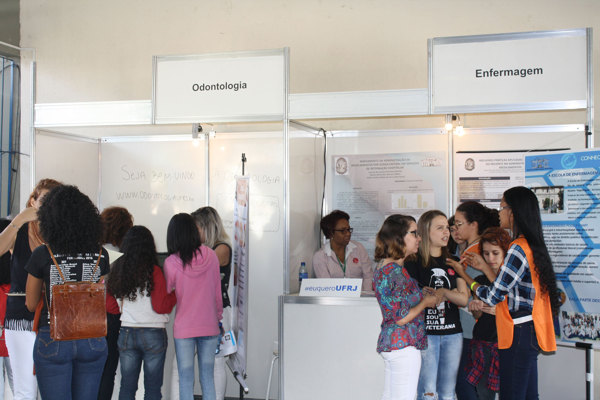 “Muitos decidem após as palestras”, afirmou a professora Maria de Fátima Miranda, de Fonoaudiologia. A docente aproveitou a ocasião para improvisar uma pesquisa sobre o perfil daqueles que procuraram o estande do curso: a maioria era do sexo feminino, e com idade até 18 anos.