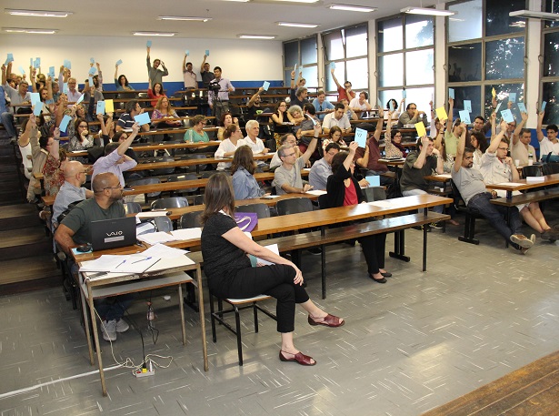 Ao todo, 114 docentes participaram da Assembleia Geral, que ocorreu simultaneamente em auditório do Instituto de Física e no Salão Nobre do IFCS. Dentre os principais encaminhamentos estão: novas intervenções do tipo “Universidade na Praça” para dialogar com a população sobre os ataques do governo Temer; colocação de outdoors pela cidade contrários à PEC 241 para aproveitar o momento das Olimpíadas; além de panfletagens e mobilizações em alguns locais de competições.