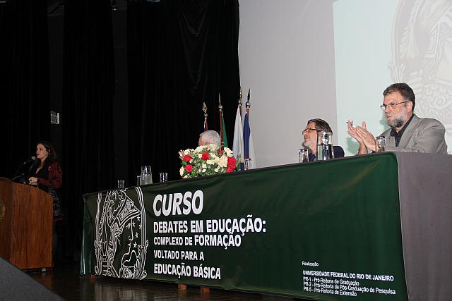 A UFRJ, por meio de suas pró-reitorias de Graduação (PR-1), Pós-Graduação (PR-2) e Extensão (PR-5), começou no dia 5 de maio o Curso Debates em Educação. “Desde o início do ano, as pró-reitorias — juntamente da Faculdade de Educação, Colégio de Aplicação, Escola de Educação Infantil e coordenadores de licenciaturas — formaram uma comissão para pensar a estrutura do curso, que visa ser de formação para a Educação Básica”, contou a professora Rogéria de Ipanema, assessora da PR-5.
