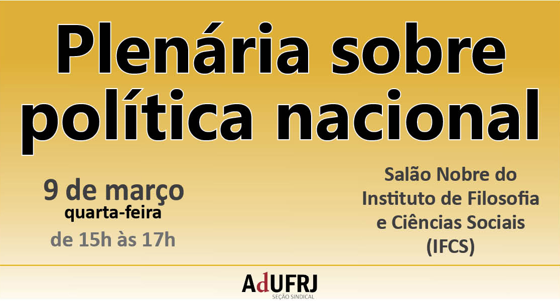 A diretoria da Adufrj convida todos os professores e todas as professoras para uma plenária sobre as forças em jogo neste momento da política brasileira. Decifrar o que está acontecendo é uma tarefa coletiva. Venha contribuir!