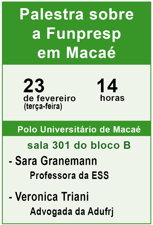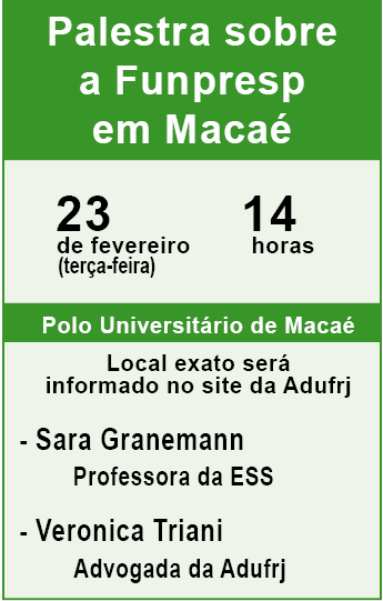 Vale ressaltar que a posição da Adufrj é esclarecer e informar para que o professor avalie a melhor opção. Neste sentido, a Seção Sindical realizará um debate sobre a Funpresp no próximo dia 23, em Macaé (veja quadro).