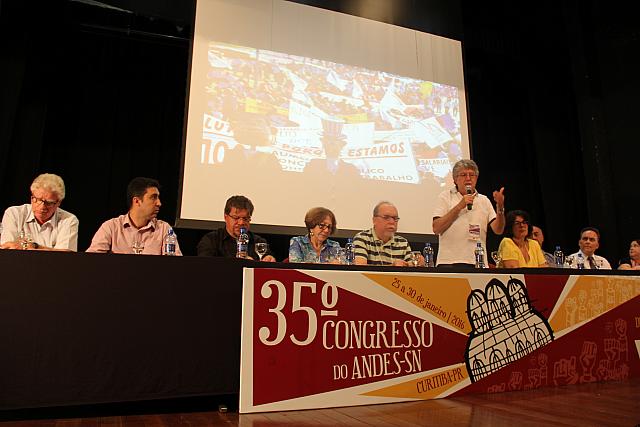 Um diagnóstico duro sobre as perspectivas políticas para o Brasil, no próximo período, foi ponto de convergência entre diferentes análises de conjuntura expressas por docentes no primeiro dia do 35º Congresso do Andes-SN, que se realiza em Curitiba (PR) de 25 a 30 de janeiro. As avaliações sobre como reagir frente ao cenário adverso, contudo, apontaram diferentes caminhos.